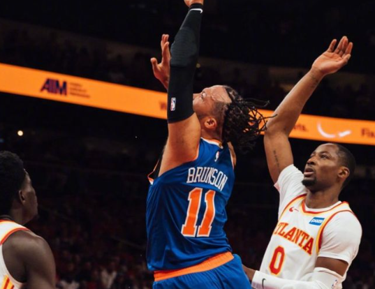 决战第四节,库明加1打3命中后又飞身补篮,打停尼克斯!麦克布莱德和杰伦对轰三分,唐斯联合哈特追到只差4分,奥孔武补篮稳定节奏。布伦森和库明加继续对飙,阿努诺比三分球追到只差2分,尼克斯继续包夹麦科勒姆,但布伦森主动后退让出空间莫名其妙!阿努诺比+麦克布莱德两记三分球追平!最后2分钟,唐斯大帽CJ,布伦森垫步上篮完成2+1!杰伦补篮后,布伦森竟然压哨投出三不沾!老鹰最后一攻,麦科勒姆撤步跳投反超,布伦森最后一攻,直接失误被库明加抢断!