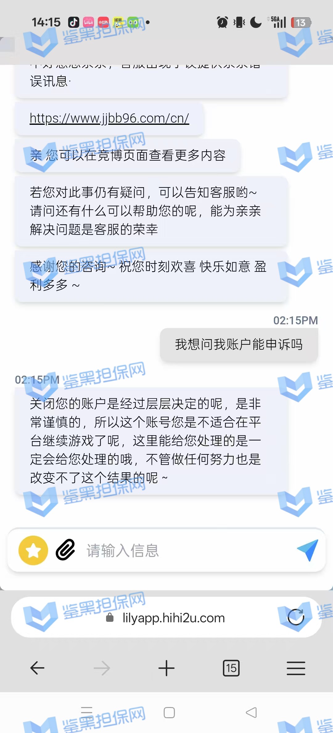 不出款并封禁账号,账号lanmfans,在竞博jbo平台一直投注体育和电竞,之前的存款提款都没出现过问题,在10月6号提款140000,是usdt提款方式,平时是秒提到账的。10月7到10月9号用帐户里剩下的2w多玩到了48w,因为现在登不上账号没办法提供投注截图和提款截图。只能提供跟客服的沟通记录和之前usdt存款进去的记录。